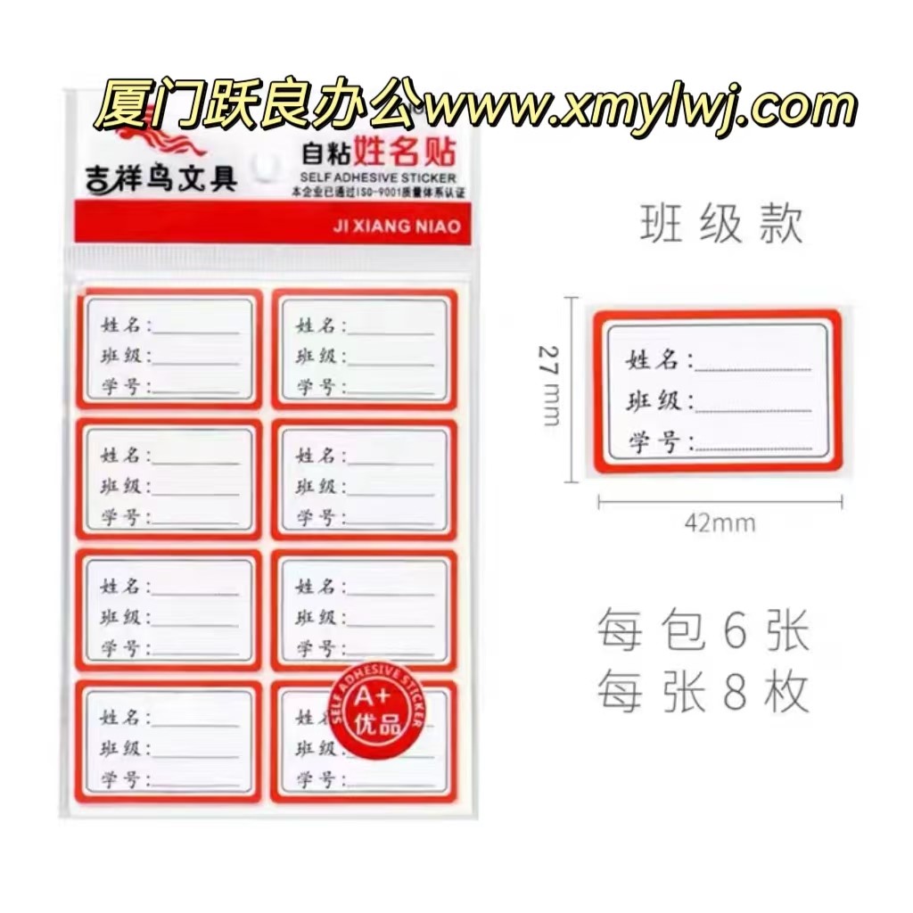 | 吉祥鸟xmt015/6132自粘姓名贴6张90mm*120mm | |