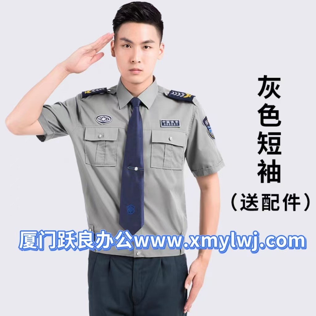 工作服 保安服夏装上衣(男装灰色短袖 肩章胸章 领带)