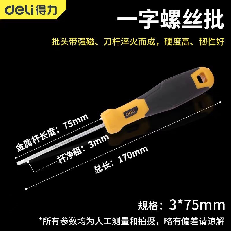 | 得力工具dl6330751一字螺丝批螺丝刀3*75mm | |