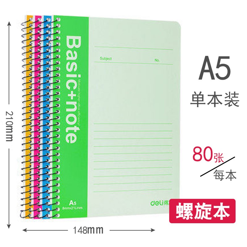 | 得力7684办公螺旋本(混)-80张-a5 | |