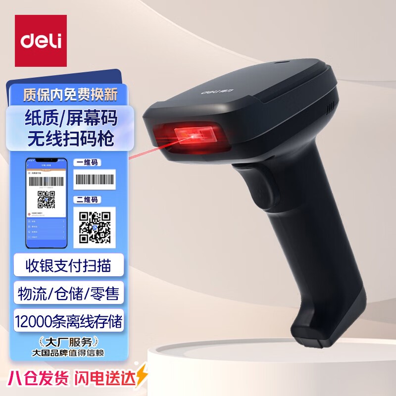 得力dl14952w无线一二维扫描枪黑 影像式餐饮零售商超仓储物流商品条码扫描枪