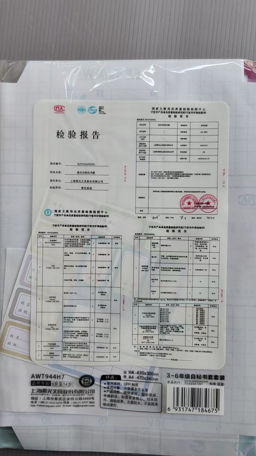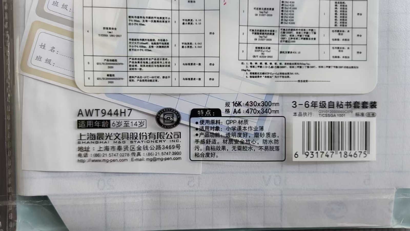 晨光awt944h7自粘书套(16k书皮12张 a4书皮4张)适合小学3-6年级