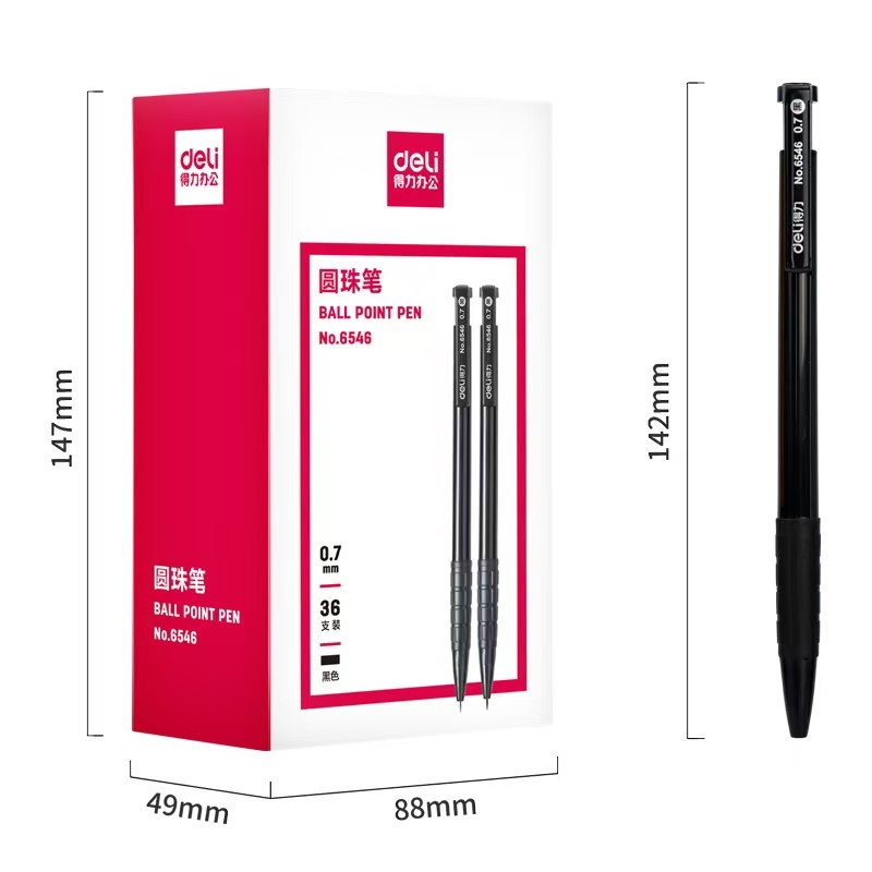 得力6546圆珠笔0.7mm子弹头黑