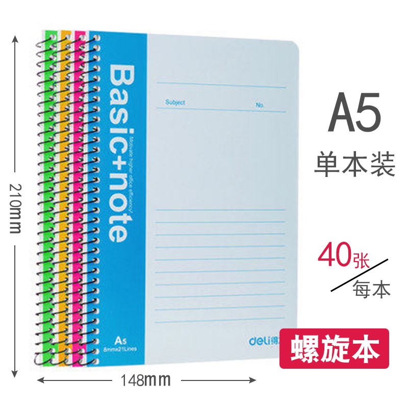 得力7681办公螺旋本40张-a5