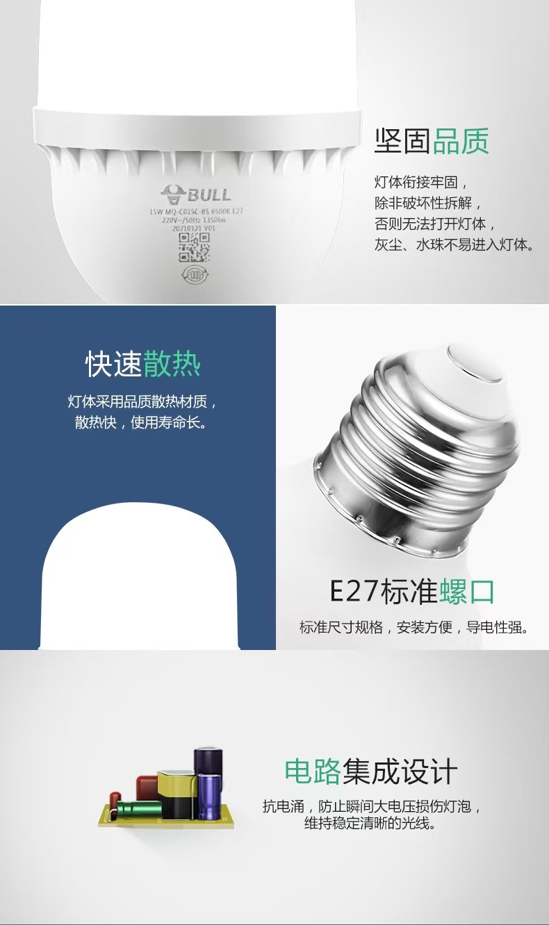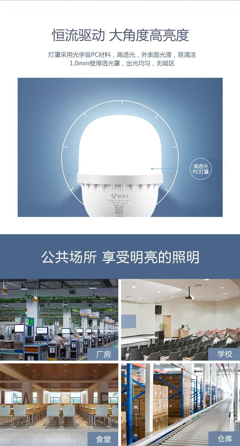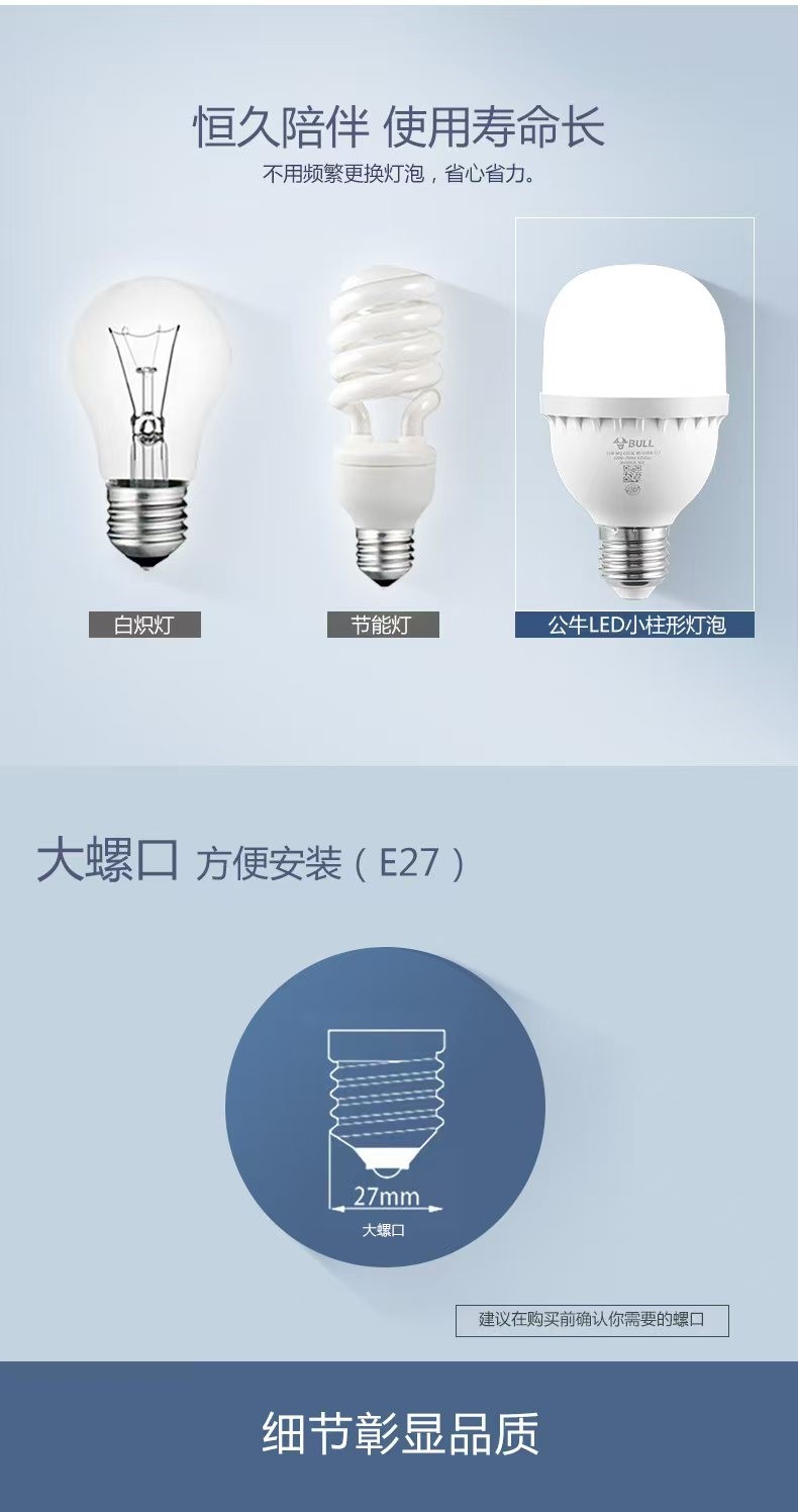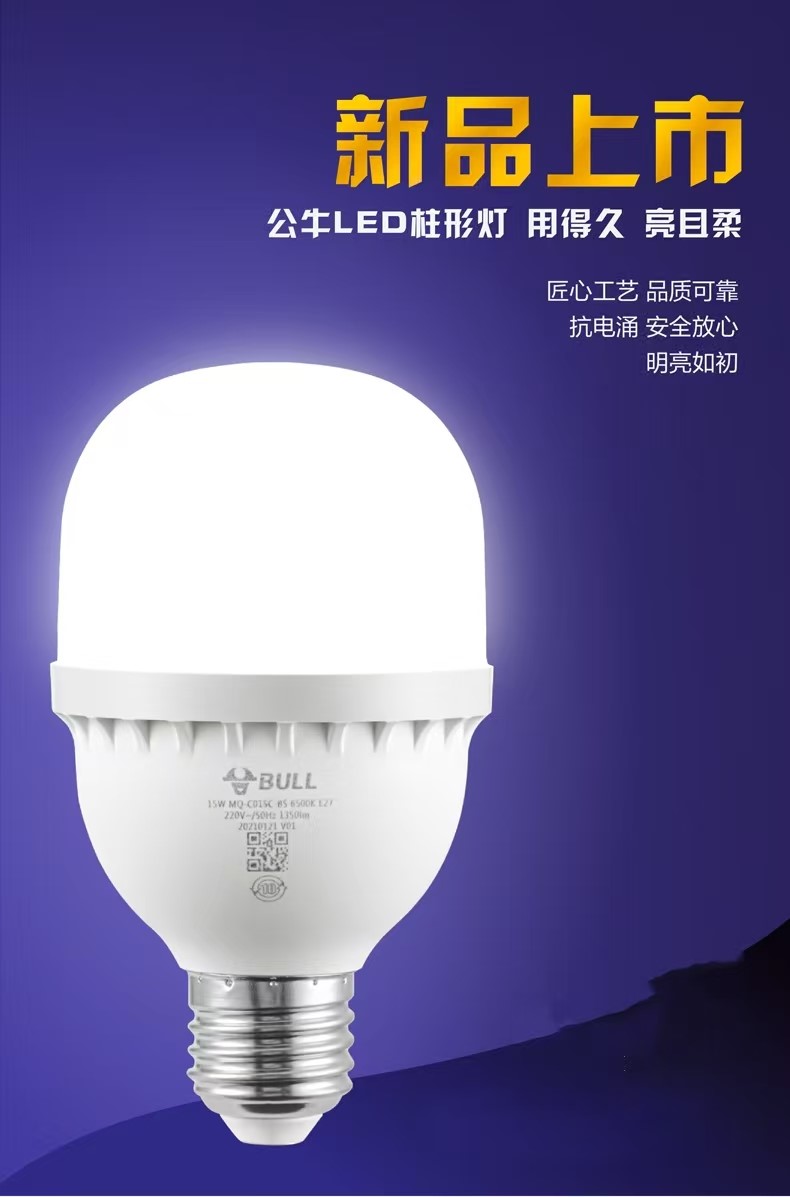公牛mq-c020c柱形球灯泡灯20w6500k白光