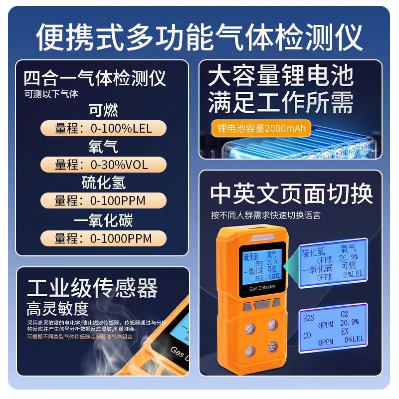 艾博汇abh843便携式语音型四合一气体检测仪