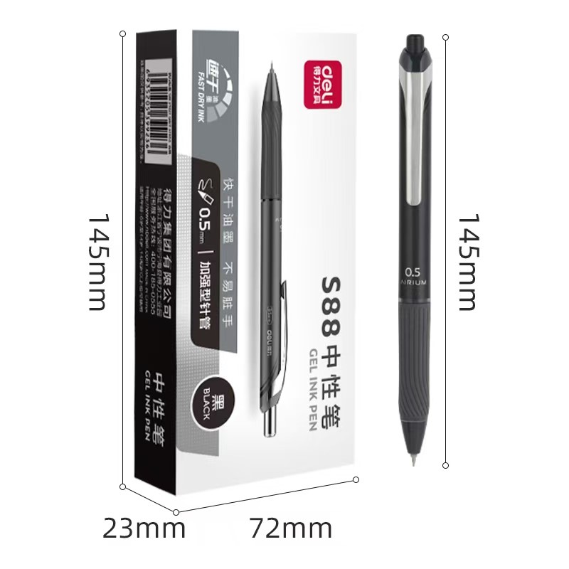 得力s88办公中性笔加强型针管(速干)0.5mm黑